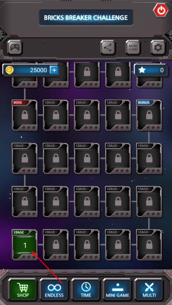 2、游戲進(jìn)行中,根據(jù)所選模式規(guī)則,在無(wú)限模式中持續(xù)打破磚塊積累分?jǐn)?shù),或在時(shí)間攻擊模式里與時(shí)間賽跑,盡可能多地?fù)羲榇u塊。
