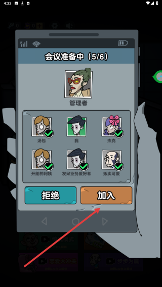 1、選擇員工模式,進(jìn)入后處理會(huì)議邀請(qǐng),點(diǎn)擊加入?yún)⑴c,在辦公室場(chǎng)景操控角色執(zhí)行任務(wù)。