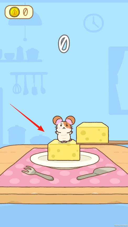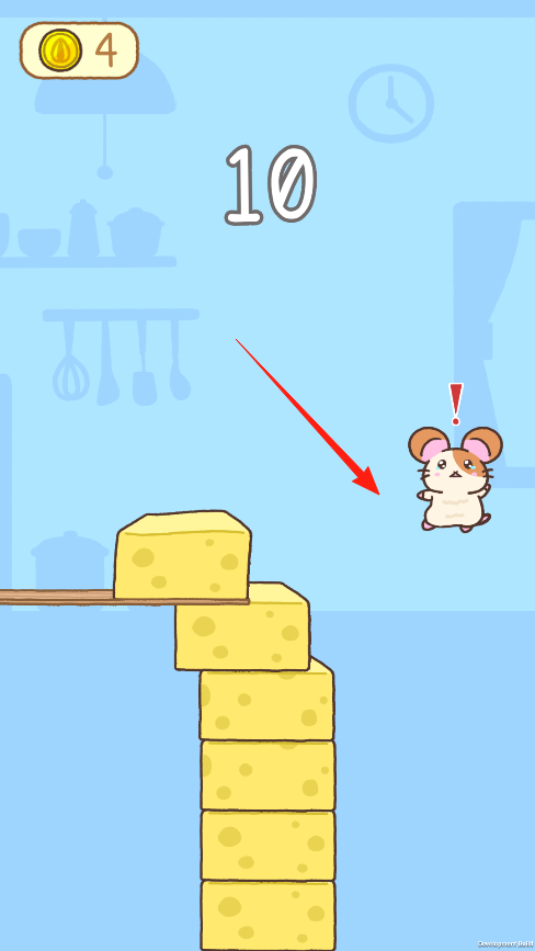 2、控制倉鼠從木板跳到奶酪堆上,每成功一次就能得1分,目標(biāo)是要拿到10分,看到倉鼠頭頂紅色感嘆號時要小心,說明平臺要塌了,得趕緊跳到下一塊奶酪上。
