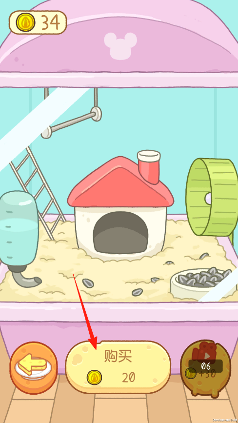 3、花20金幣點購買按鈕能給倉鼠添置新家具,像那個綠色跑輪玩久了會加分,點+30按鈕可以快速獲得金幣,不過每天只能領(lǐng)幾次,要省著點用哦。