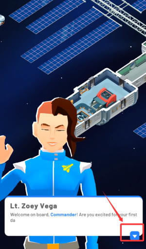 2、點擊紅框藍色對勾按鈕,確認維加中尉的歡迎對話。