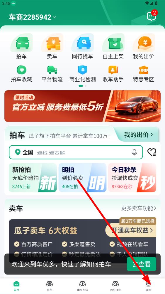 1、打開車優(yōu)多APP,在首頁底部點擊我的圖標(biāo)。