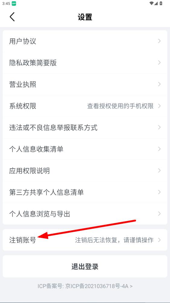3、在設(shè)置界面里,找到并點擊注銷賬號選項,進(jìn)入申請注銷賬號頁面。