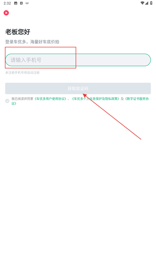 2、進(jìn)入登錄的頁面內(nèi),輸入手機(jī)號點擊獲取驗證碼。