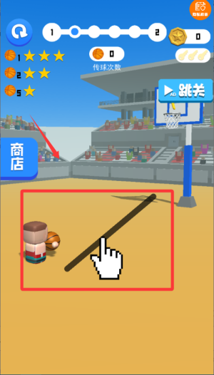 1、開始游戲后先選一個順眼的橡皮人角色,熟悉按壓蓄力和滑動調(diào)整方向的操作,找到投籃的手感。