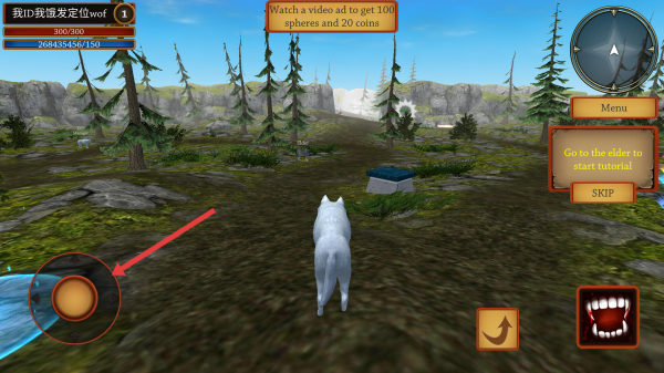 2、在游戲中,使用屏幕上的虛擬搖桿來控制角色的移動方向,在森林場景中自由探索。