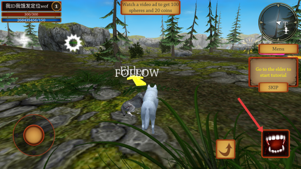 3、當遇到其他角色時,根據(jù)屏幕上的提示,點擊咬,攻擊你面前的狼,獲得資源。