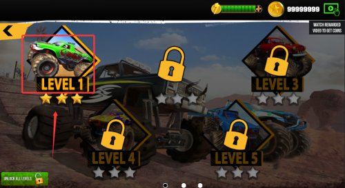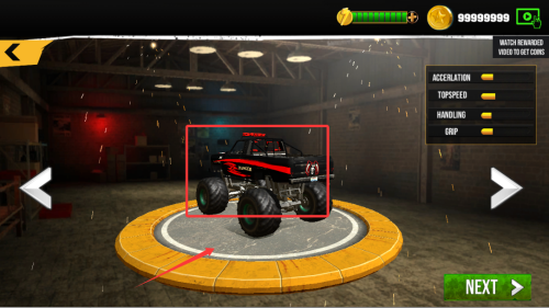 2、從十余款動(dòng)力強(qiáng)勁的巨型卡車(chē)中,挑選最適合當(dāng)前賽道的專屬座駕。
