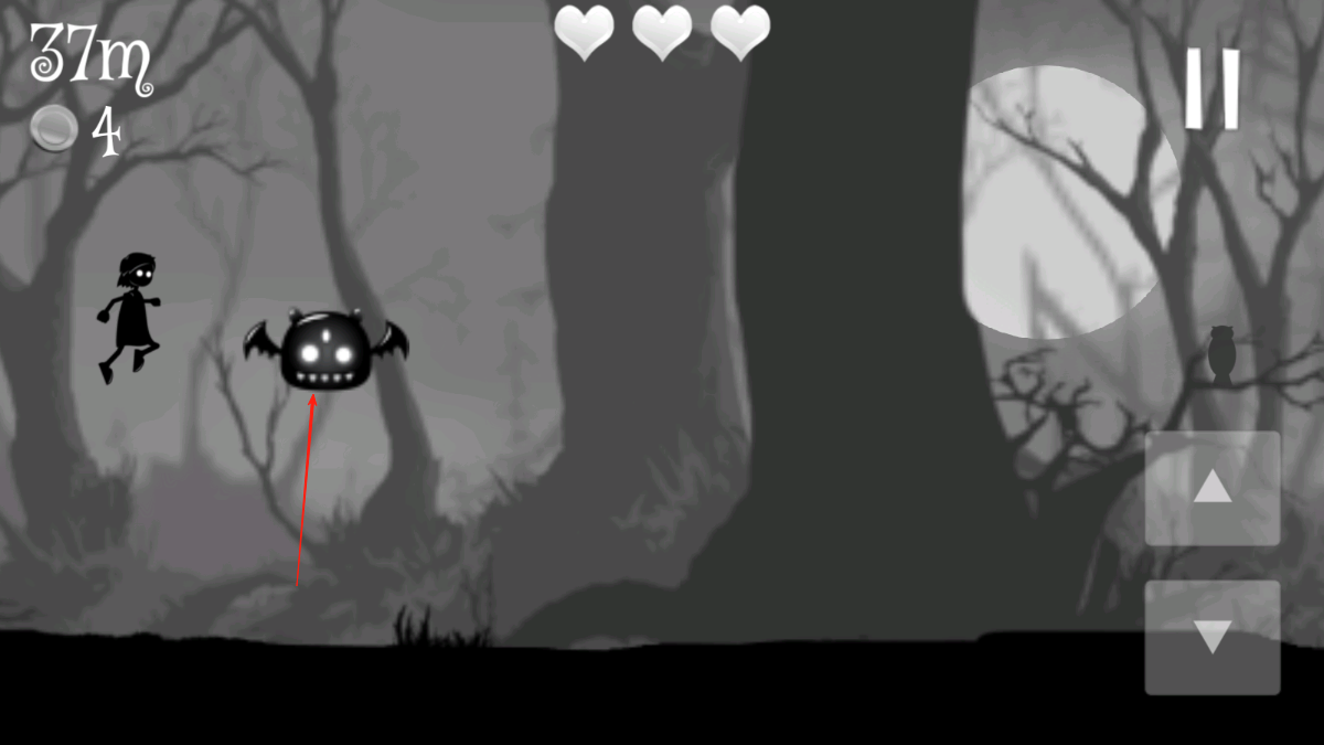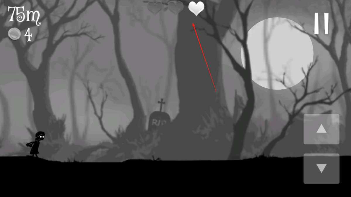 3、每次都有三次生命,撞上障礙或者怪物后就會扣除一顆心,且回到前一點的位置復(fù)活。