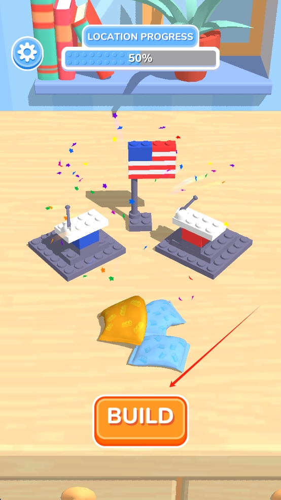 3、完成建筑設(shè)計(jì)后,點(diǎn)擊全景按鈕可360°查看作品全貌,點(diǎn)擊橙色的BUILD按鈕,即可開始新的關(guān)卡。