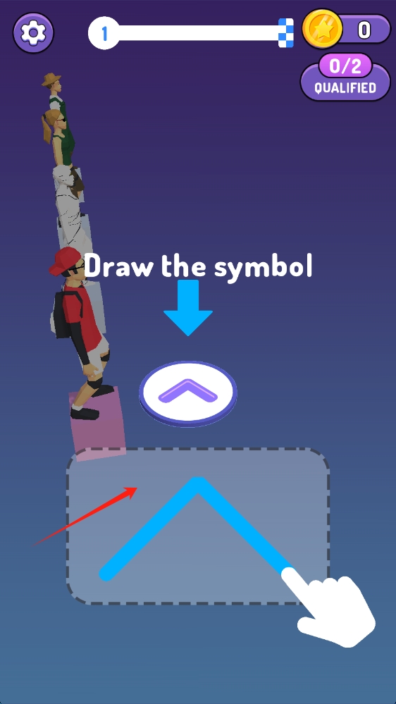 2、進(jìn)入游戲場(chǎng)景,根據(jù)提示Draw-the-symbol,在畫板準(zhǔn)確繪制指定符號(hào),劃線移動(dòng)。