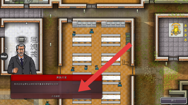 2、玩家與執(zhí)行官進(jìn)行對(duì)話交流,了解了監(jiān)獄大致的情況以及我們所需要做的一些內(nèi)容。