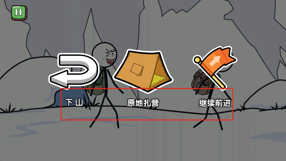 2、后續(xù)面對下山、原地扎營和繼續(xù)前進(jìn)的選項(xiàng),選錯(cuò)了可能會(huì)遇到新的危險(xiǎn),需要我們慎重的進(jìn)行選擇。