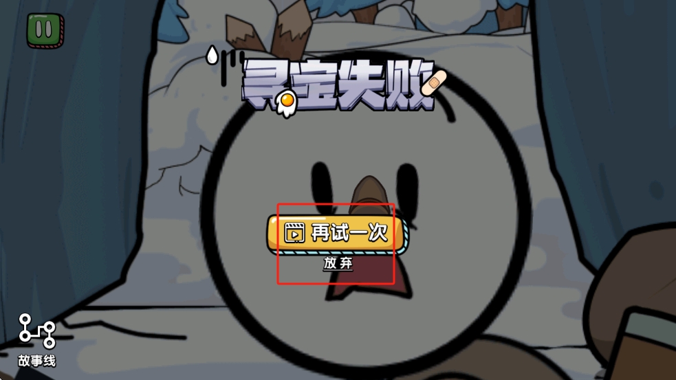 3、尋寶失敗后,選再試一次重啟關(guān)卡調(diào)整前序選擇,點(diǎn)放棄則結(jié)束本次挑戰(zhàn),根據(jù)想重玩或退出的意圖操作。