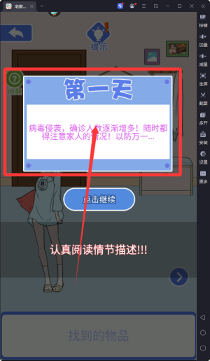 3、玩家通過幫助主角找到合適道具解決宅家難題,如尋找丟失的鑰匙、匹配正確的餐具等趣味挑戰(zhàn),增強(qiáng)游戲代入感。