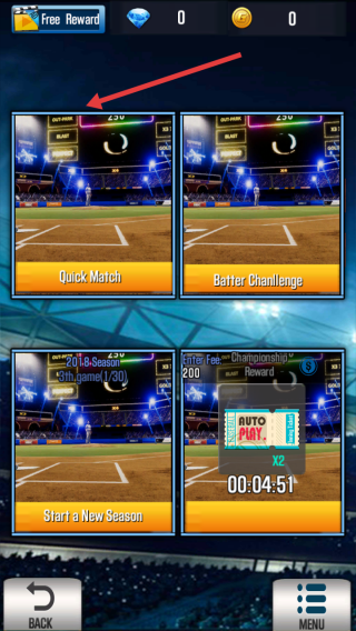 1、點擊主界面PLAY,進入棒球游戲模式選單,選Quick Match快速對戰(zhàn),開啟與Fire Birds隊的賽事。