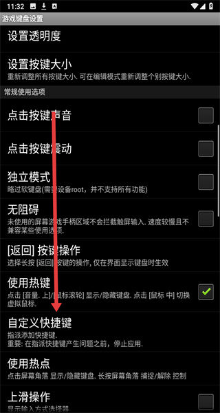 2、在進入設置頁面中,通過下拉找到并點擊自定義快捷鍵選項,進入設置。