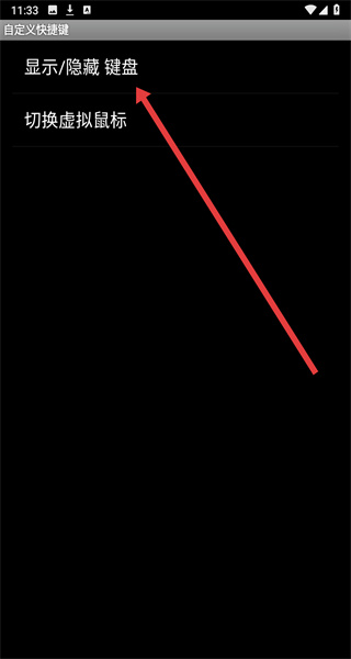 3、在自定義快捷鍵頁面中,可以選擇點擊顯示/隱藏鍵盤選項,進行設置快捷鍵。