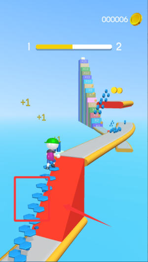 1、進(jìn)入游戲后控制橡皮人向前奔跑、注意路上的磚塊及時(shí)收集。保持移動(dòng)節(jié)奏不要停頓、避免被其他對手超過。