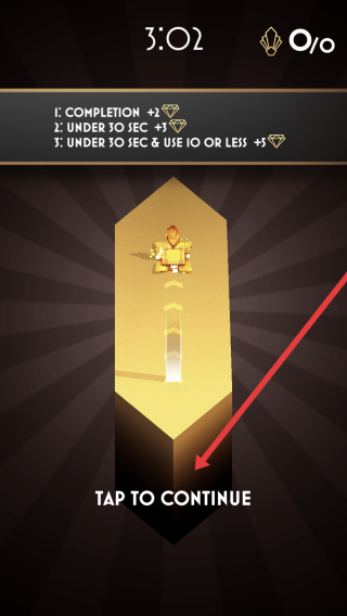 2、在任務說明界面點擊TAP-TO-CONTINUE,進入關卡,留意上方三個任務目標完成、30秒內、30秒內且用10個以內,提前規(guī)劃通關策略。