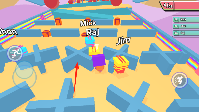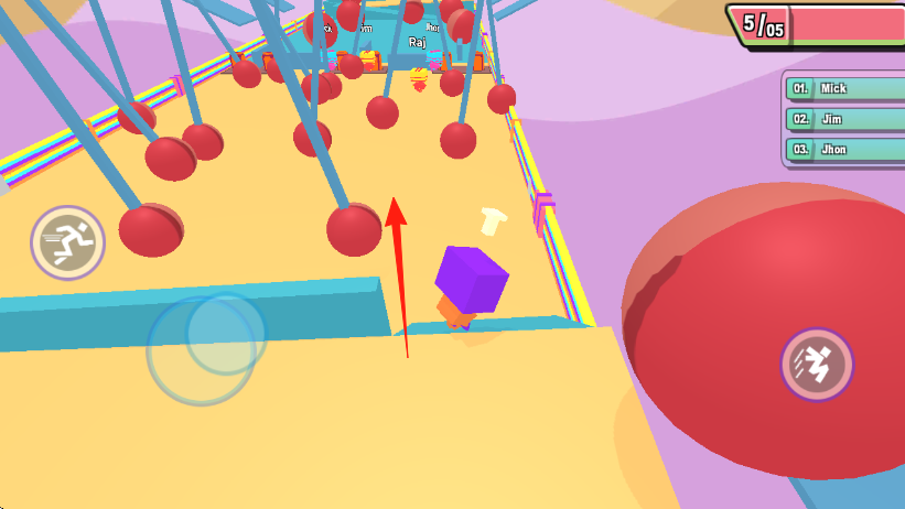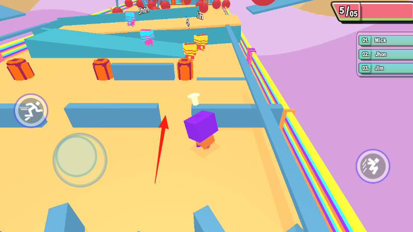 1、操控紫色方塊角色玩家,與Mick、Jhon、Raj、Jim等對(duì)手競(jìng)爭(zhēng)。