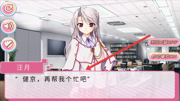 2、在與對(duì)面角色汪月的對(duì)話界面,需要繼續(xù)點(diǎn)擊屏幕推進(jìn)健京,再幫我個(gè)忙吧的劇情對(duì)話。