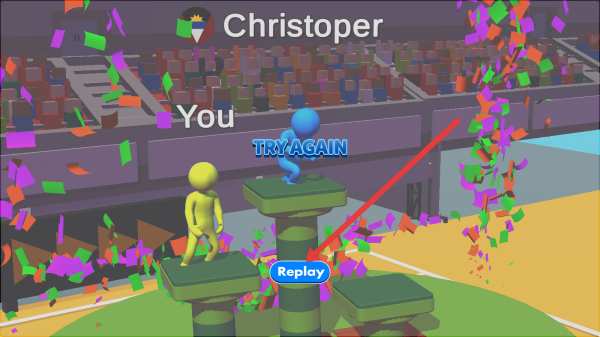3、比賽結(jié)束后,若未取勝可點擊Replay按鈕,重新挑戰(zhàn)Christopher,調(diào)整投籃策略,爭取在對決中勝出。