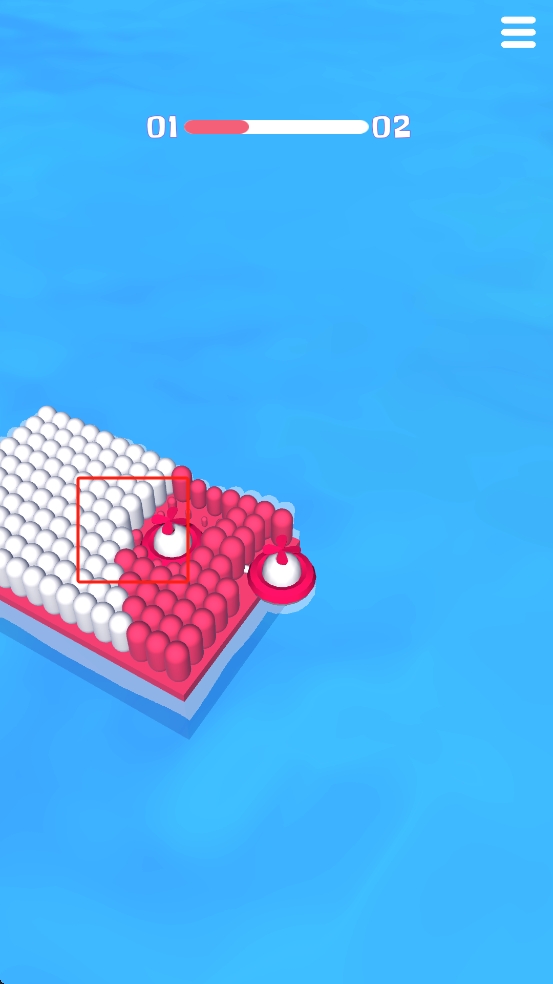 2、紅色區(qū)域擴展時,留意圓片移動方向,遇白色小球矩陣,借擴展推力讓圓片沿變紅路徑滾動,避開未變紅的白色區(qū)域。