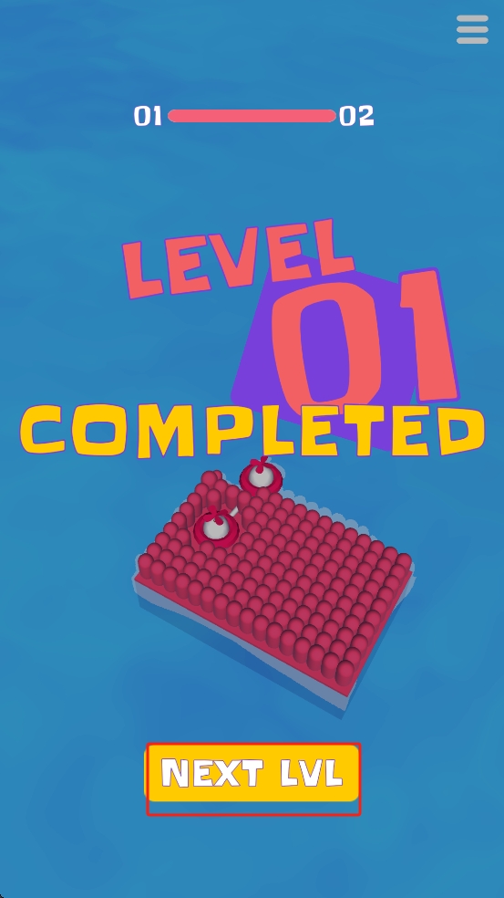 3、關卡完成后,點擊下方按鈕進入下一關,新關卡會有更復雜的白色小球矩陣布局,需繼續(xù)優(yōu)化紅色覆蓋和圓片滾動策略。