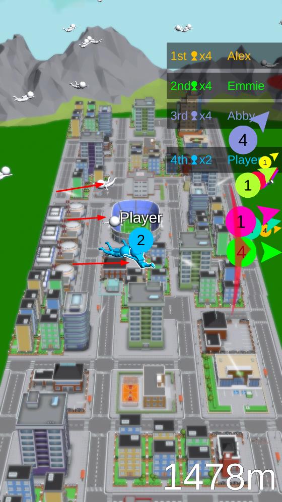 3、跑酷元素融合跳傘玩法:將跑酷元素融入跳傘過(guò)程,下落中不僅要收集與躲避,還需在落地后展開(kāi)短距離跑酷對(duì)決,從空中到地面的玩法銜接流暢。