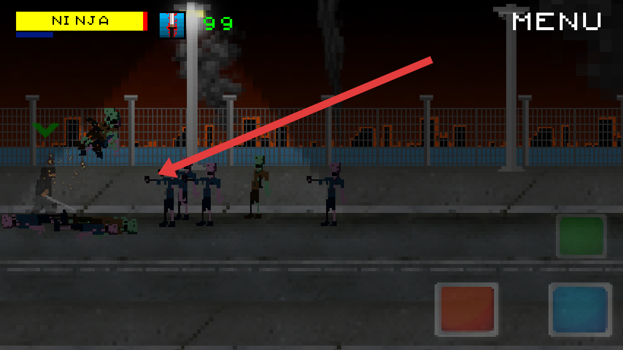 3、進入戰(zhàn)斗實操,操控NINJA運用跳躍、攻擊,對抗街頭僵尸,主角擁有四種攻擊形態(tài)選擇適合自己的形態(tài)。