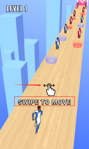 1、向左滑動紅框區(qū)域,控制角色移動避開障礙。