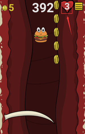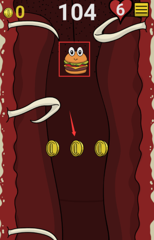 2、控制紅框漢堡角色,避開障礙收集金幣。