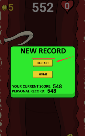 4、點(diǎn)擊紅框RESTART按鈕,刷新548分記錄重新挑戰(zhàn)。