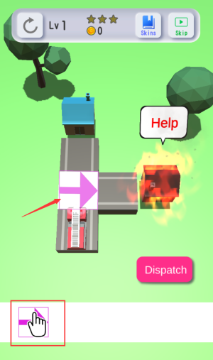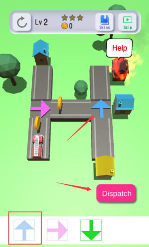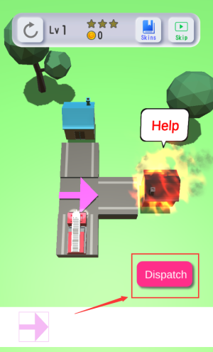 2、點(diǎn)擊粉紅Dispatch按鈕,派出消防車執(zhí)行滅火任務(wù)。