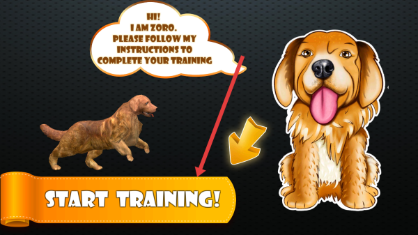 1、點擊界面底部橙色START-TRAINING按鈕,跟隨Zoro的指引,開啟狗狗訓練課程,學習操控指令完成挑戰(zhàn)。