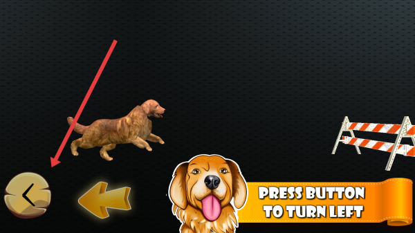 2、訓練時看到左轉(zhuǎn)提示,按下左側(cè)箭頭按鈕,操控狗狗向左轉(zhuǎn)向,避開障礙,逐步熟悉操作指令。
