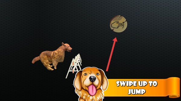 3、當狗狗前方出現(xiàn)障礙,按照提示向上滑動屏幕,讓狗狗跳躍過障礙,完成跳躍指令的訓練任務(wù)。