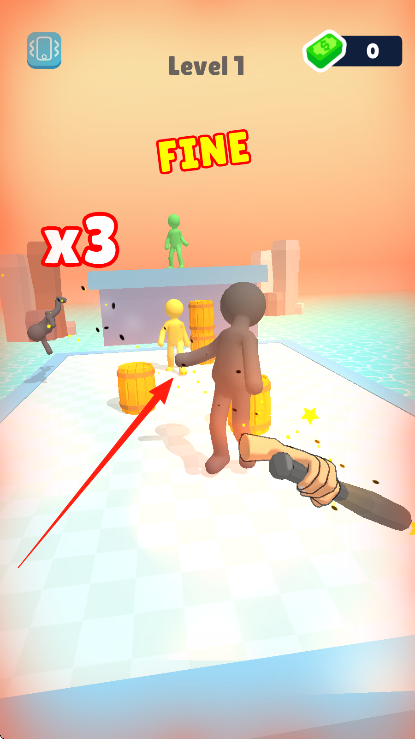 2、連續(xù)攻擊,讓角色擊敗黃色小人,達成【FINE】評價,提升連擊數(shù)x3。