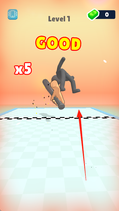 3、保持連擊,擊飛黑色小人過終點線,獲【GOOD】評價,連擊數(shù)達x5,通關(guān)Level1。