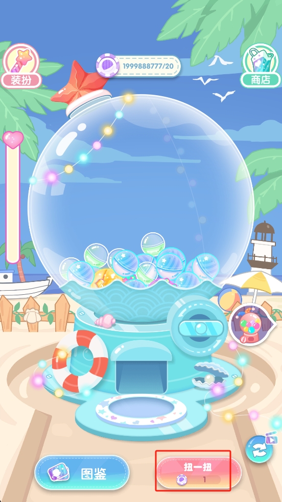 1、進入作品后我們點擊下方的扭一扭按鈕,消耗1個道具啟動扭蛋機,等待扭蛋轉(zhuǎn)動,準備獲取新角色或物品。