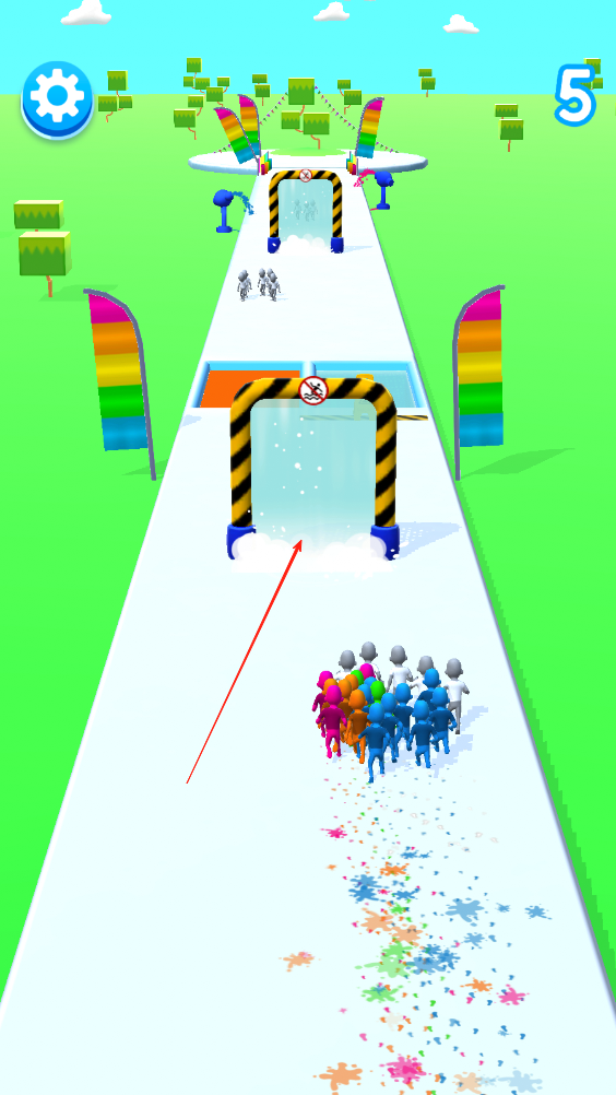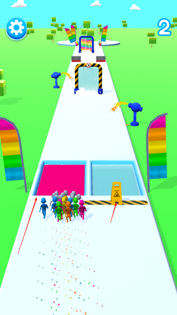 1、操控小人們沖向顏料池順便收集路上的小人,同時避開路上障礙,面對兩個池子的時候,注意要跳進有顏色染池。