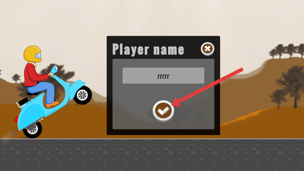 1、在Player name對(duì)話框內(nèi)輸入自己的昵稱后,點(diǎn)擊對(duì)話框底部帶白色對(duì)勾的圓形確認(rèn)按鈕,完成角色命名。