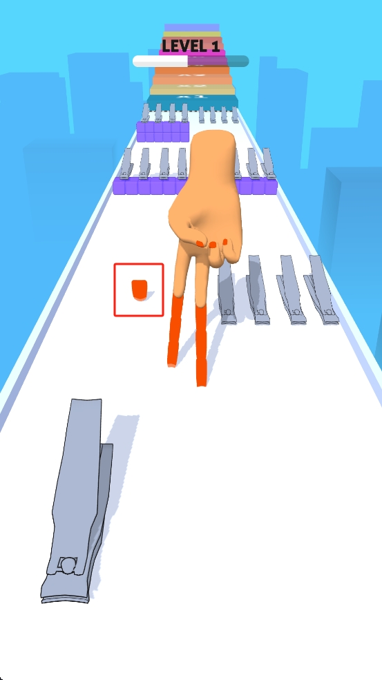 1、精準(zhǔn)收集操作:滑動屏幕控制手掌左右移動,在賽道中避開障礙,準(zhǔn)確接住掉落的指甲節(jié),確保每一節(jié)都完美銜接,避免因碰撞導(dǎo)致的斷裂。