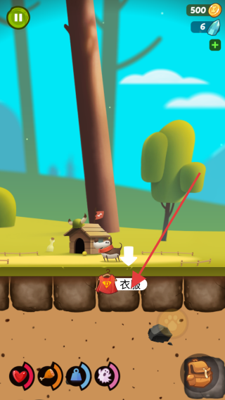 3、在場(chǎng)景遇“衣服”等道具,點(diǎn)擊拾取,裝備或利用其推進(jìn)流程,操控角色探索地圖,挖掘?qū)毑?,完成任?wù),積累金幣、鉆石,升級(jí)角色,解鎖新內(nèi)容。