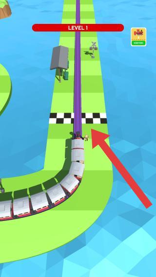 1、畫面出現(xiàn)了第一關(guān)的游戲場(chǎng)景,顯示了載著乘客的火車即將到達(dá)終點(diǎn),先進(jìn)行了新手教程的指引頁(yè)面。