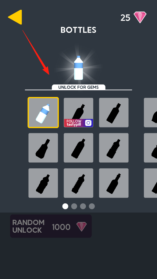 3、通關(guān)后進(jìn)入瓶子解鎖界面,用鉆石能解鎖新瓶子,點想解鎖的瓶子,花對應(yīng)鉆石就能換樣式,換不同瓶子玩,讓每次翻轉(zhuǎn)跳躍更有意思,攢鉆石解鎖喜歡的瓶子吧。