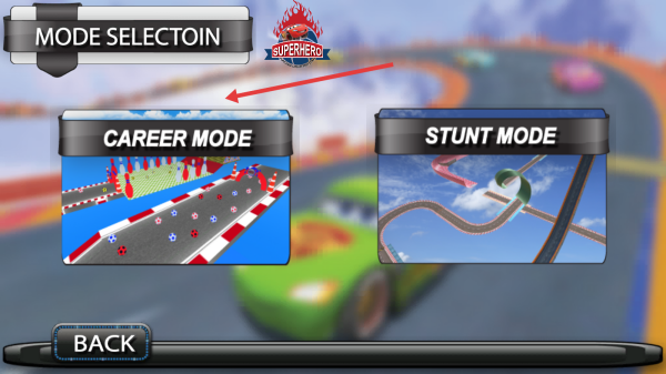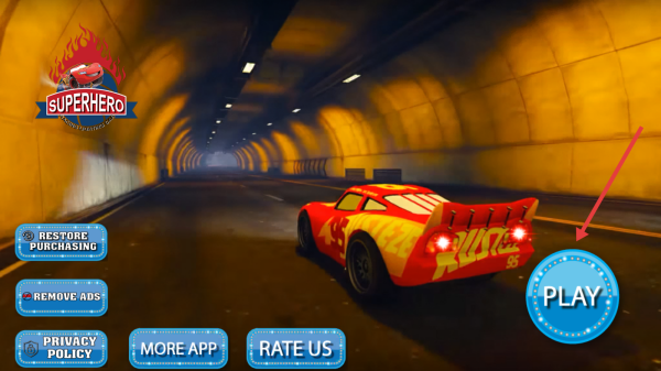 1、在SuperHero賽車(chē)游戲主界面,點(diǎn)擊藍(lán)色PLAY按鈕,進(jìn)入模式選擇頁(yè)開(kāi)啟游戲。
