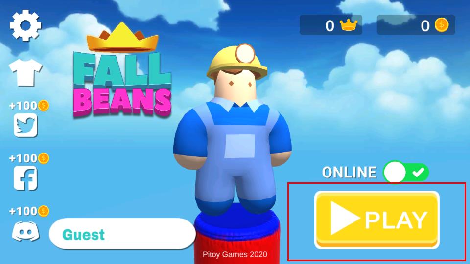 1、需要在游戲主界面,點(diǎn)擊右側(cè)黃色PLAY按鈕,以訪客Guest身份進(jìn)入多人競(jìng)技模式,正式開啟闖關(guān)旅程。
