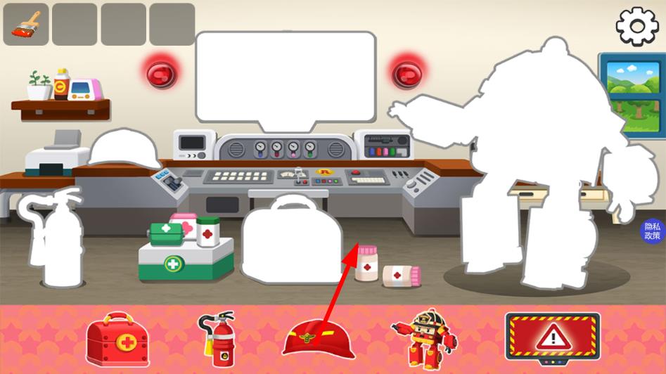 1、進入游戲后,先在消防站換上消防制服,通過點擊互動認(rèn)識滅火器的壓力表、水帶的接口方式、云梯車的升降按鈕等,學(xué)習(xí)基礎(chǔ)器械的使用規(guī)范。